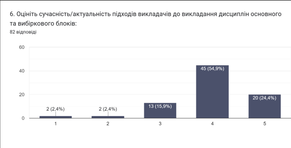 Кінець року — це ідеальний момент, щоб озирнутися назад і проаналізувати пройдений шлях. Саме тому з 22 по 29 грудня кафедра англійської філології і перекладу КАІ провела традиційне опитування щодо якості освітніх послуг. Нам було важливо почути «голос» кожного, і ми щиро вдячні 82 респондентам — студентам усіх курсів денної форми, які поділилися своїми думками.