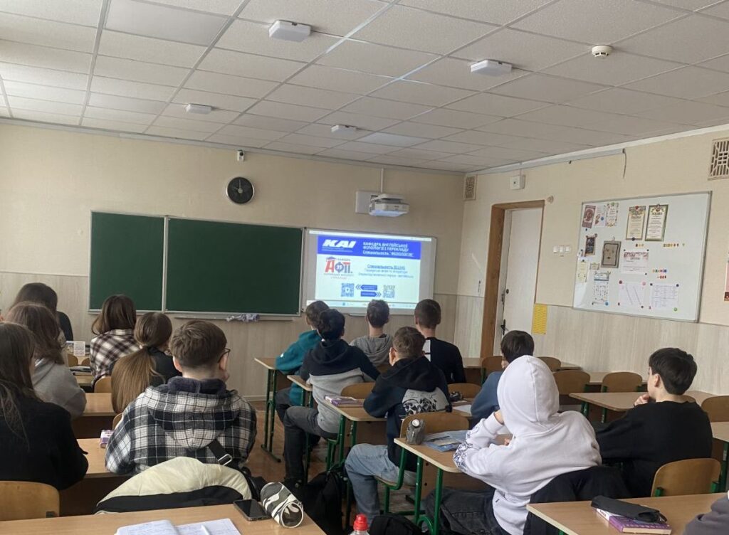 У ліцеї «Універсум» відбувся онлайн профорієнтаційний захід для школярів, організований старшим викладачем кафедра англійської філології і перекладу Гуманітарно-мистецького факультету Павлом Геннадійовичем Покотилом. Метою зустрічі було ознайомлення учнів із можливостями навчання у Київському Авіаційному інституті (КАІ) та перспективами майбутньої професійної діяльності.