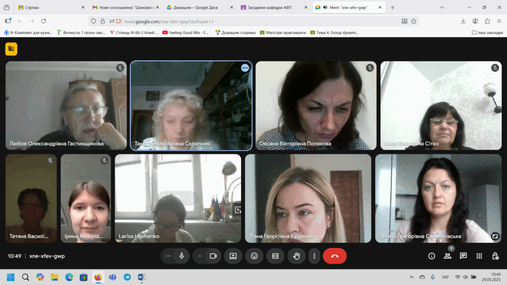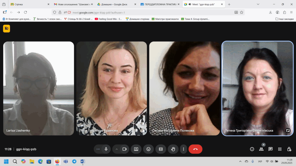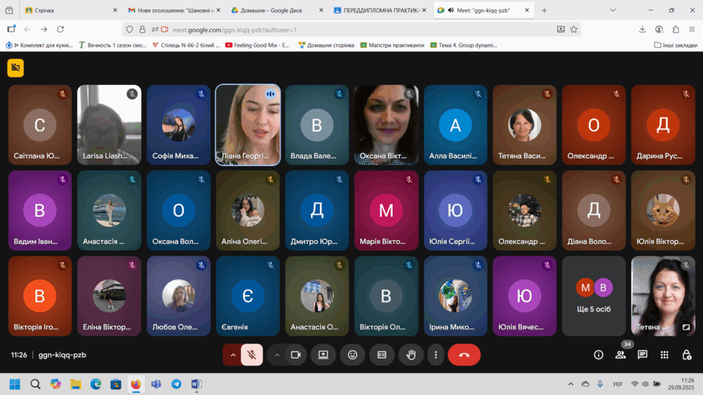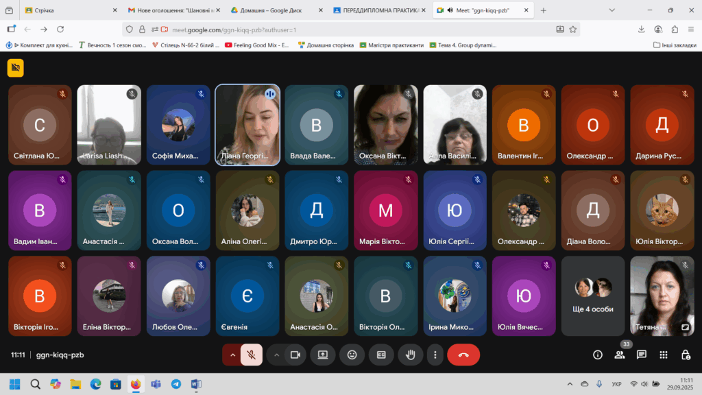 29 вересня 2025 року на кафедрі англійської філології і перекладу факультету психології, комунікацій та перекладу відбувся захист переддипломної практики магістрів денної та заочної форм навчання. Здобувачі 2 курсу спеціальності 035 «Філологія» за освітньою програмою «Германські мови та літератури (переклад включно), перша – англійська», з 1 вересня по 28 вересня 2025 року проходили переддипломну практику на кафедрі англійської філології і перекладу.
