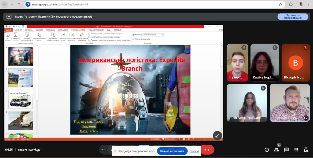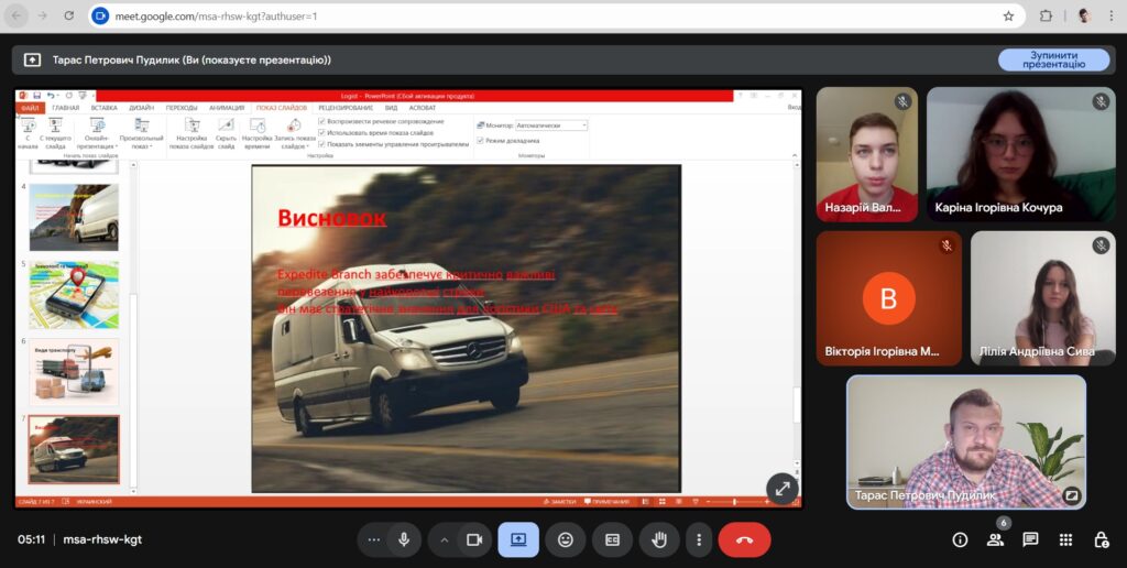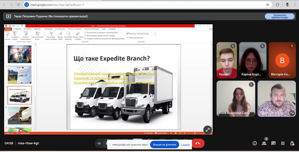 Під час презентації було розкрито ключові аспекти розвитку американської логістики, зокрема її спеціалізованого сегмента — Expedite Branch, що забезпечує надшвидкі та критично важливі перевезення. Доповідач звернув увагу на те, що в умовах глобалізації й високої конкуренції саме швидкість та гнучкість доставки стають запорукою ефективності бізнесу.