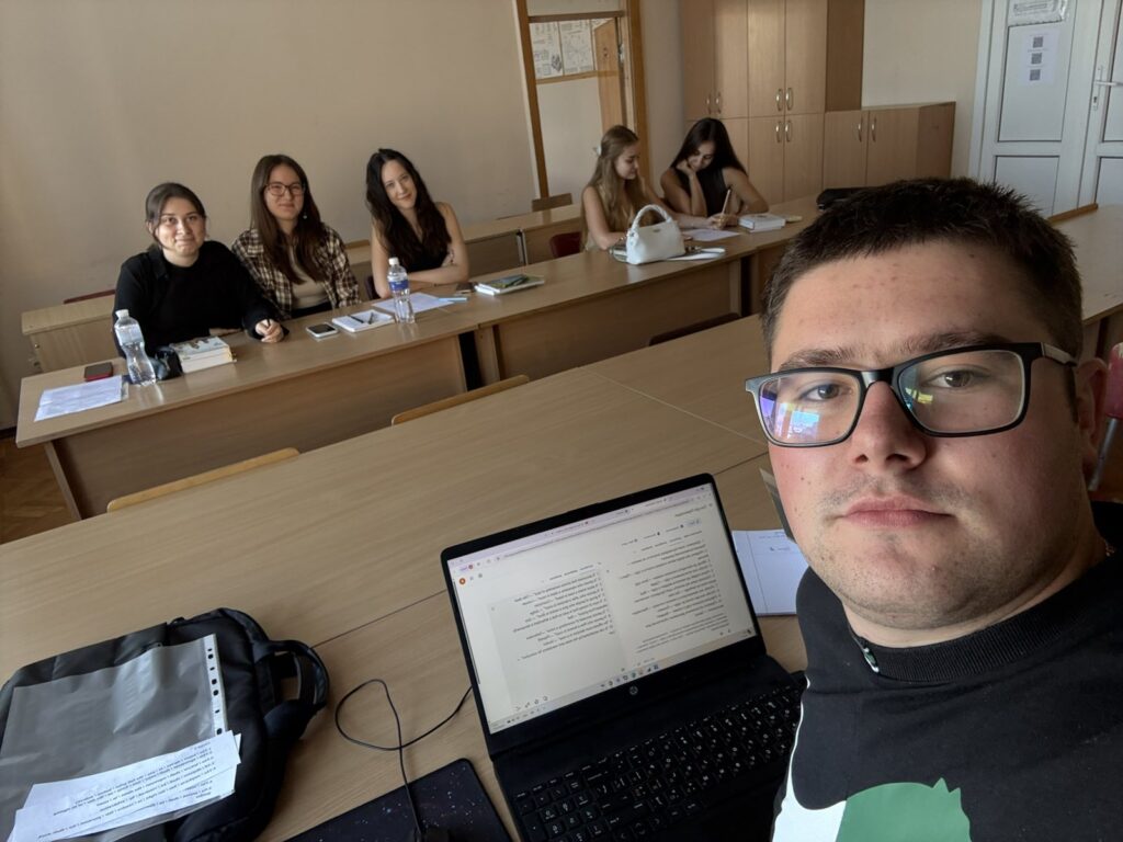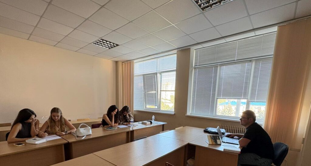 22 вересня 2025 року під час 4-ї пари в аудиторії 402 на кафедрі англійської філології і перекладу ФПКП для студентів групи Б-035-22-1-ФЛ відбувся дискурс на тему «Інтерактивний підхід до формування перекладацької компетентності у сфері права». Захід провів практикант Карпа Валентин Ігорович під керівництвом доцента кафедри англійської філології і перекладу, керівника переддипломної практики Полякової О.В.
